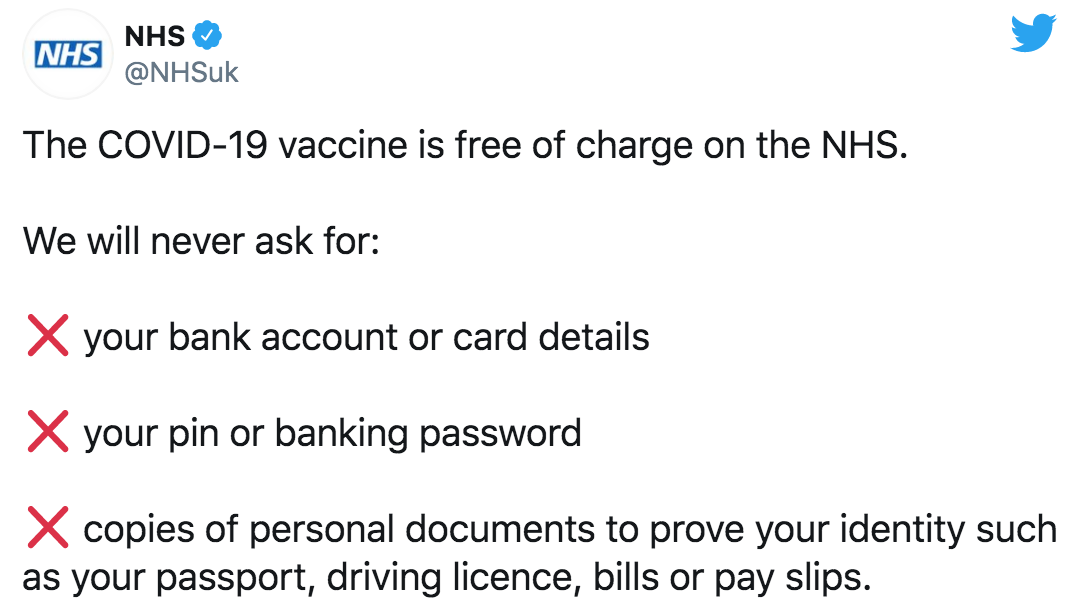 英国NHS疫苗接种骗局,海外游子别上当