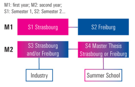 录取的学生将在斯特拉斯堡大学就读第一学期,弗莱堡大学就读第二学期,在第三和第四学期,学生可以选择弗莱堡大学或斯特拉斯堡大学完成硕士学位论文的定稿。