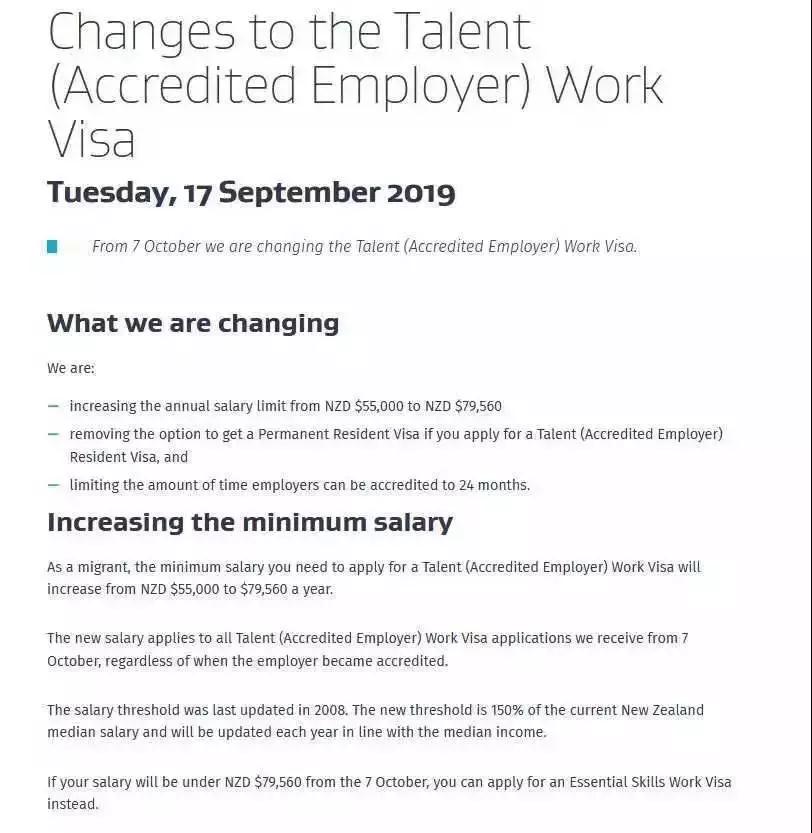 1. 将年薪限制从55,000新西兰元增加到79,560新西兰元(即大约目前薪资中位数的1.5倍。薪资门槛会每年随着统计数据有所调整)