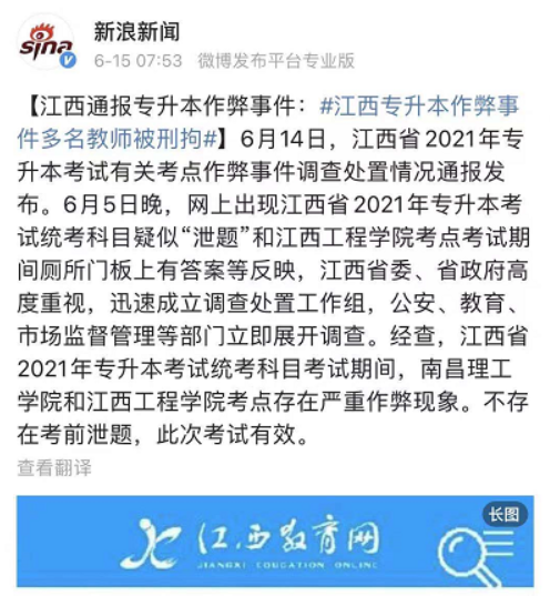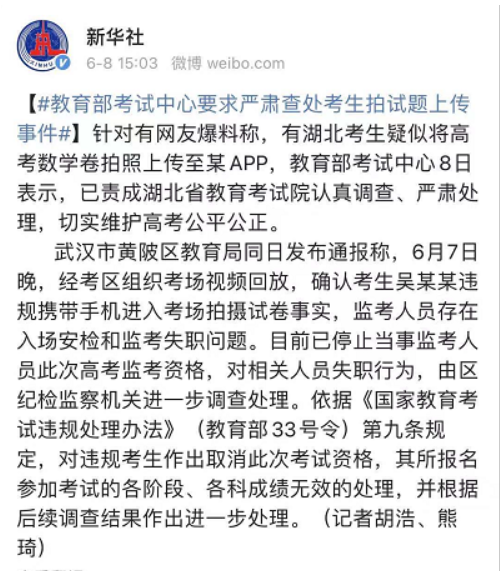 这两起事件都是跟考试作弊相关。