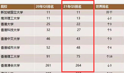 中国香港和新加坡高校2021年最新QS排名情况解析