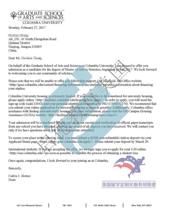 等待录取的过程是煎熬的,前期收到多个顶级名校的拒信之后,他一度开始担心自己会全拒,但是我对他的硬件和文书都有信心,终于最后如愿拿到了理想中的哥大录取,为自己的申请画上了完美的句号。