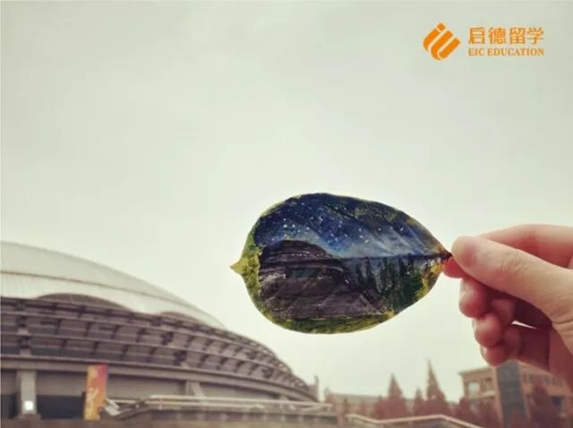 她将“最美”的工大画在了落叶上!